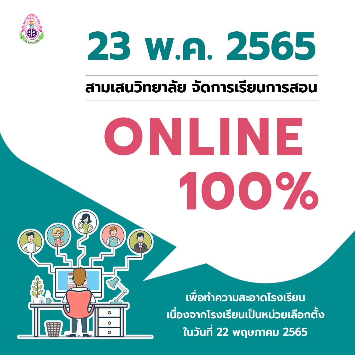ประกาศโรงเรียนสามเสนวิทยาลัย เรื่อง จัดการเรียนการสอนออนไลน์ 100% ทุกระดับชั้น ในวันจันทร์ที่ 23 พฤษภาคม พ.ศ. 2565 ประกาศจัดการเรียนดารสอนออนไลน์ 100% ทุกระดับชั้น