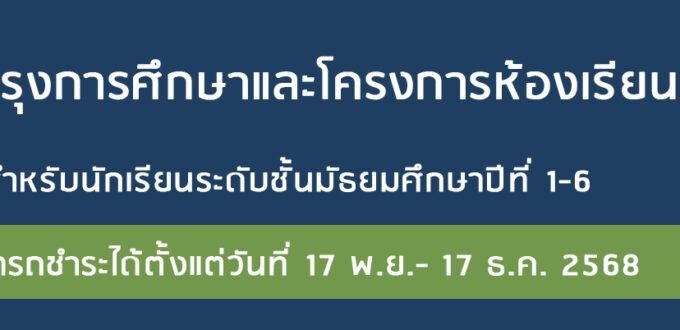 ประกาศเรื่อง การชำระเงินห้องเรียนปกติและโครงการห้องเรียนพิเศษ ภาคเรียนที่ 2/2568