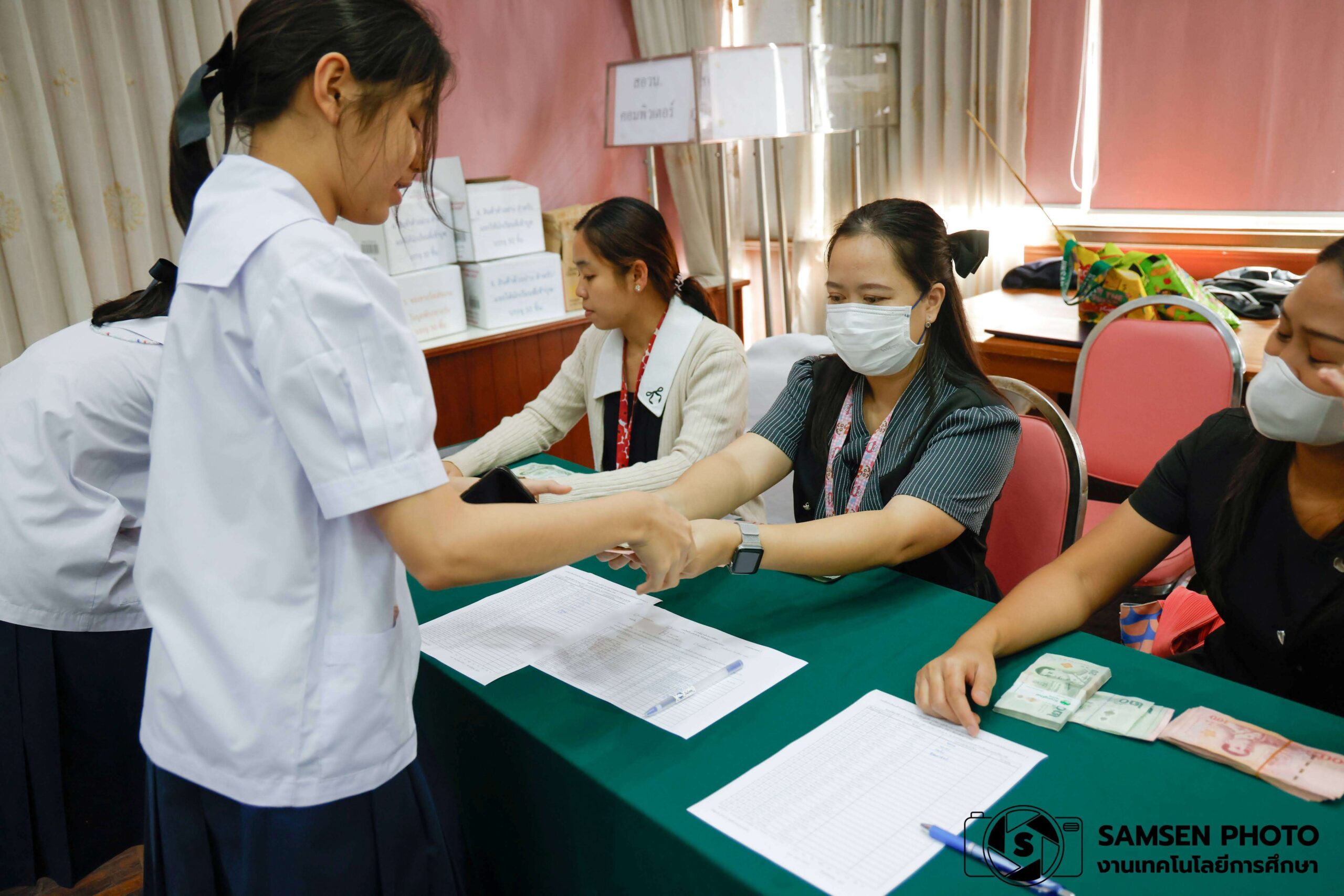 รับเงินค่าอุปกรณ์การเรียน ตามโครงการสนับสนุนค่าใช้จ่ายในการจัดการศึกษา ตั้งแต่ระดับอนุบาลจนจบการศึกษาขั้นพื้นฐาน ของนักเรียนชั้นมัธยมศึกษาปีที่ 3 โรงเรียนสามเสนวิทยาลัย วันอังคารที่ 27 พฤศจิกายน 2568
